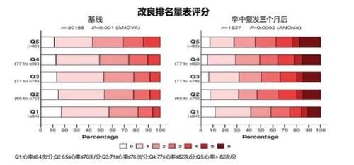 结果显示,随着静息心率的增加,患者的认知功能显着下降,死亡率显着增加;心率82次/分的患者全因死亡率分别增加了42%和74%。提示低心率与缺血性脑卒中后更好的预后和较少的认知衰退有关,并且随着静息心率的增加,新发脑卒中患者的死亡率显着增加。